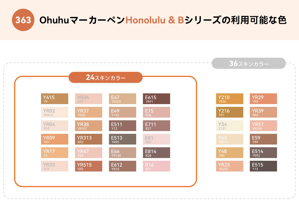 Ohuhu Honolulu イラストマーカー 24スキンカラー