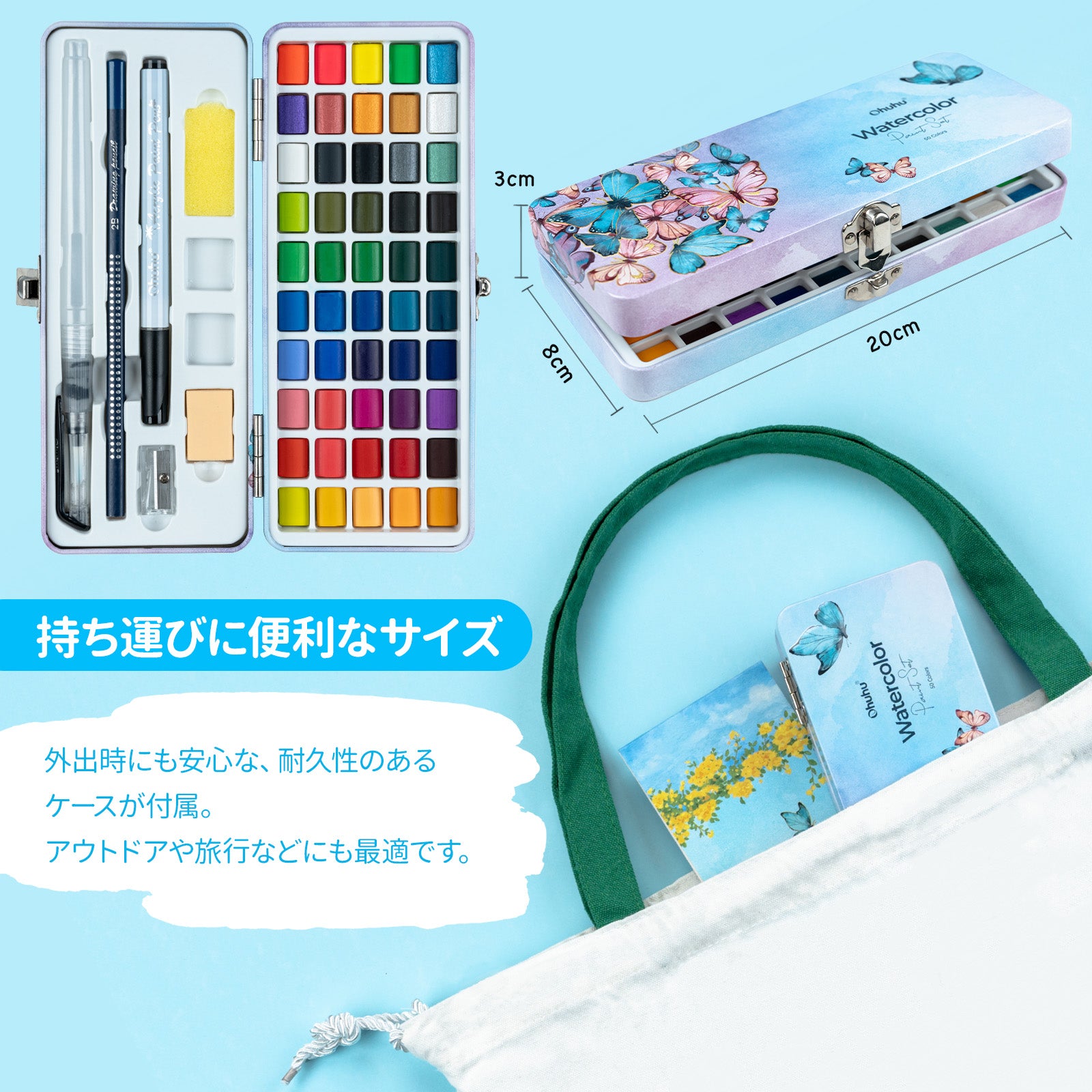 Ohuhu 水彩絵具50色 収納ケース付き
