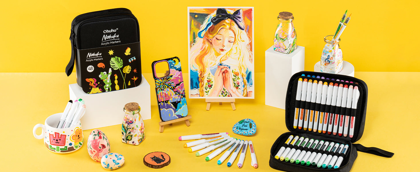 Ohuhu Nahuku 直液式アクリルマーカー 44色48本セット