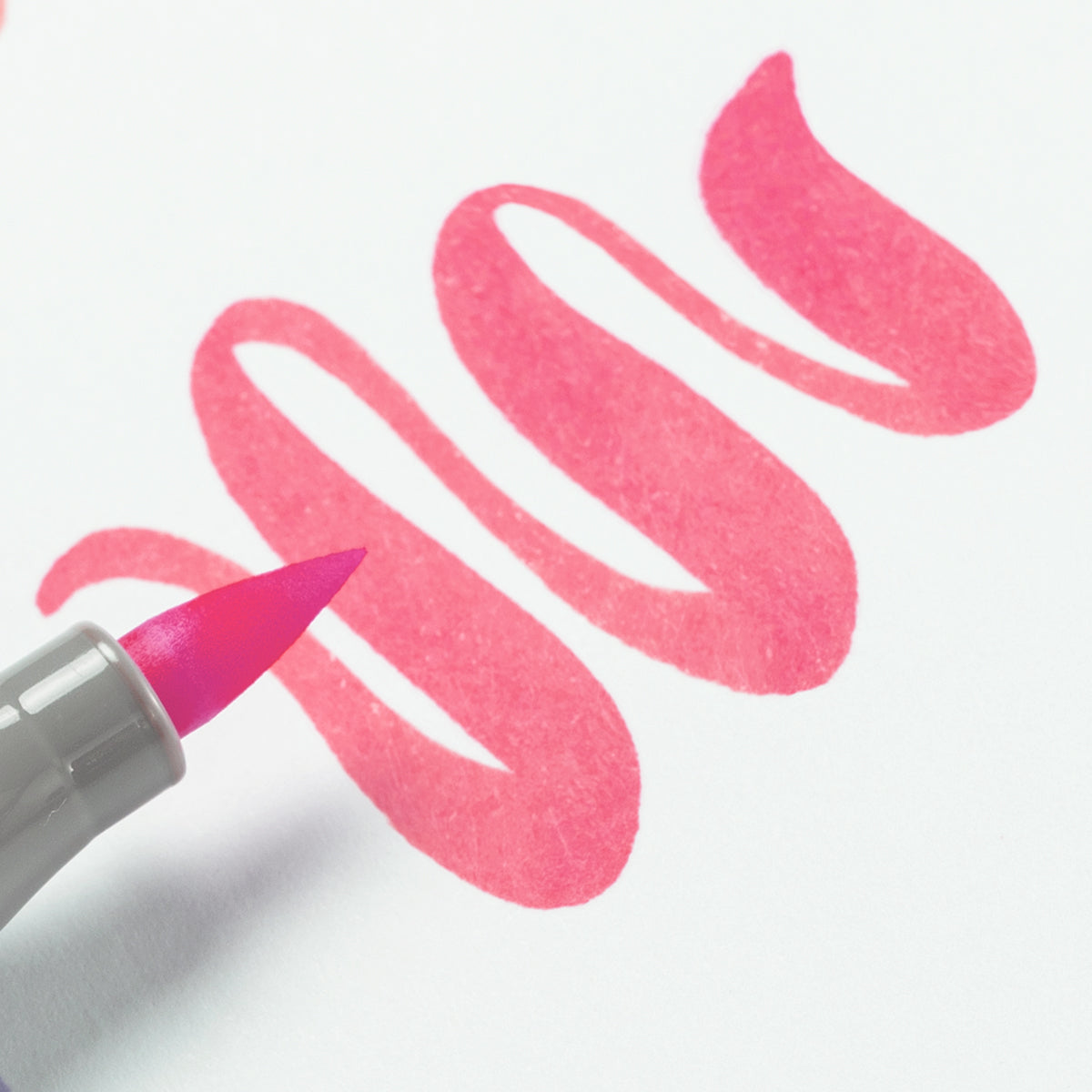 ペン先は筆と細字のツインタイプ。細字チップは硬筆タイプで、細かいイラスト表現をしたい方におすすめです。