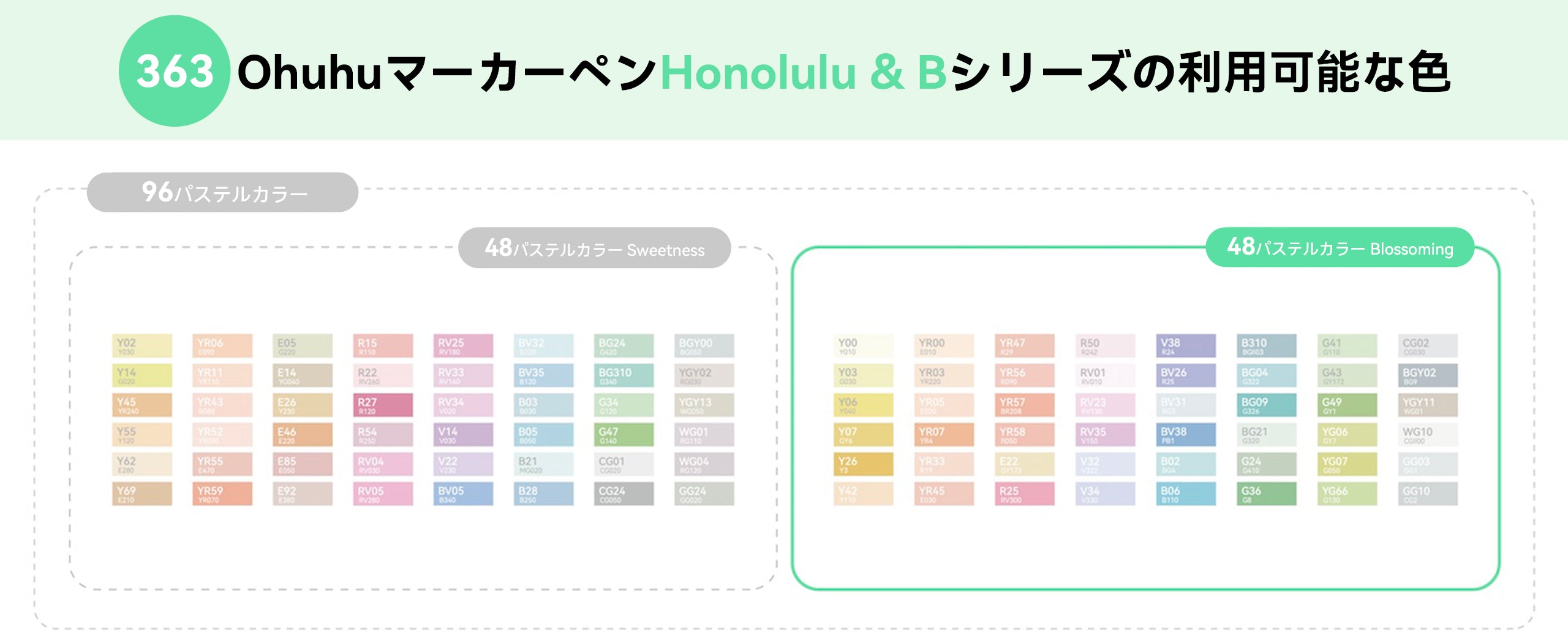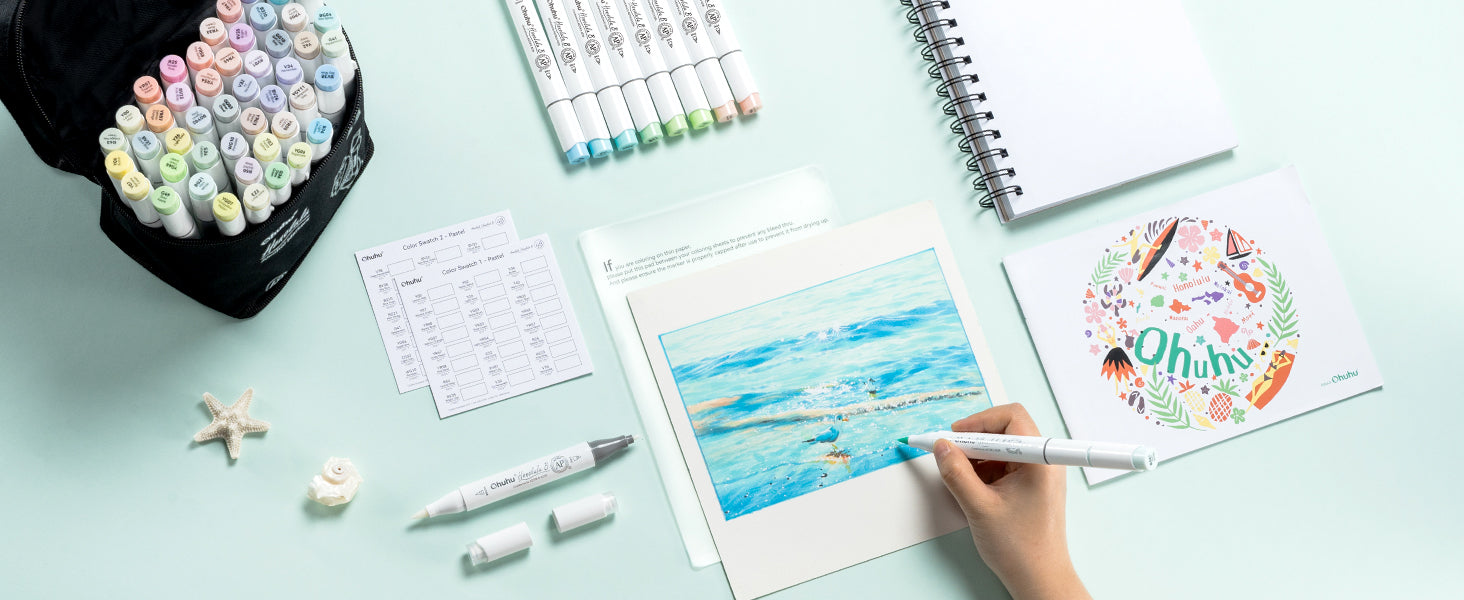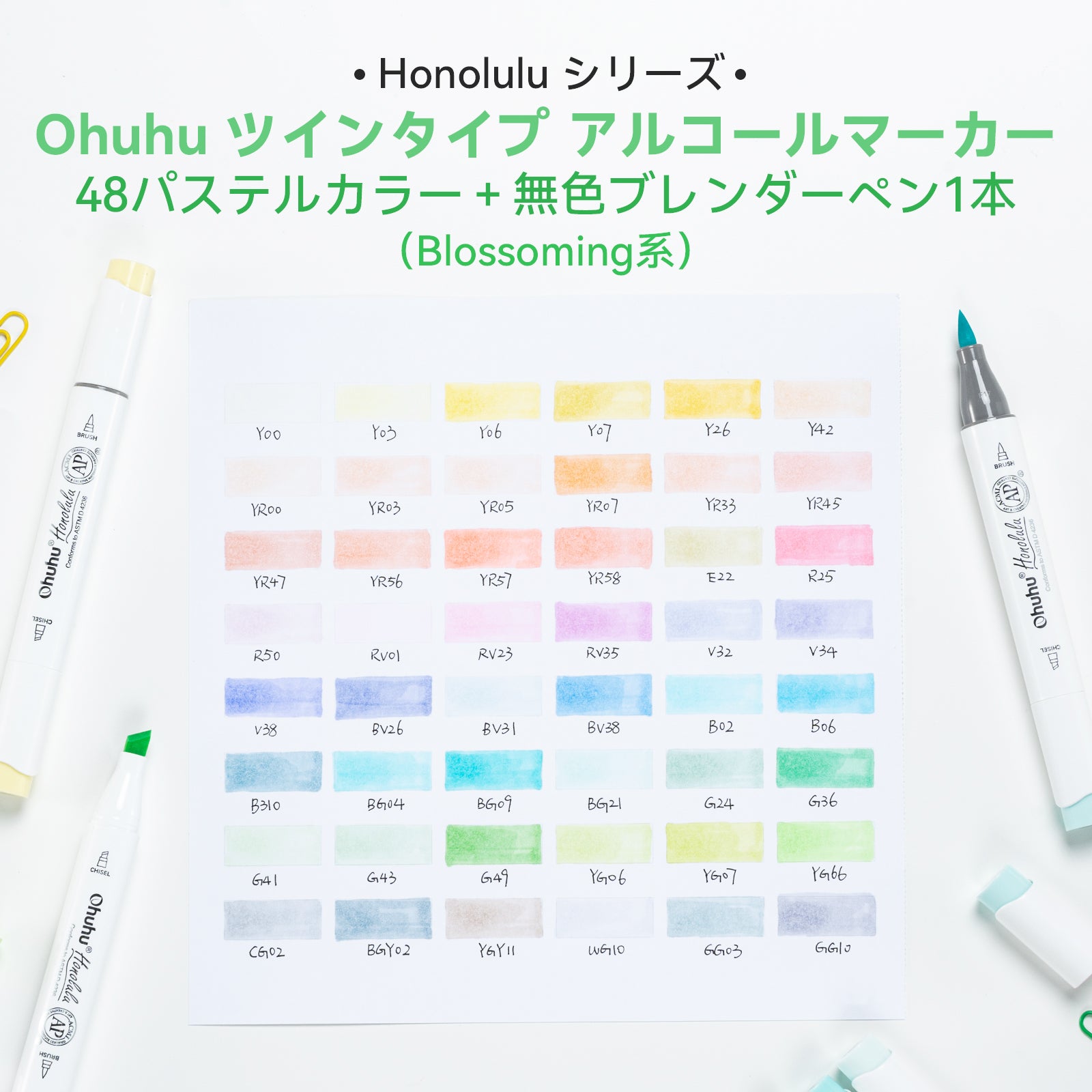 Ohuhu Honolulu B イラストマーカー 48パステルカラー 筆・細字 Blossoming系