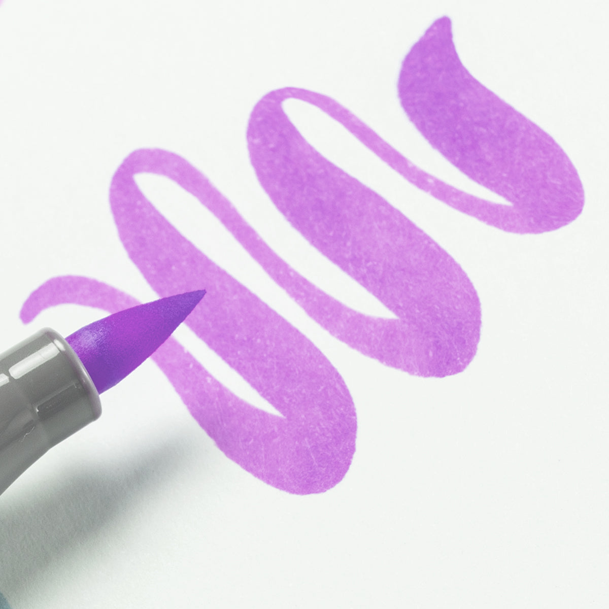 ペン先は筆と細字のツインタイプ。細字チップは硬筆タイプで、細かいイラスト表現をしたい方におすすめです。