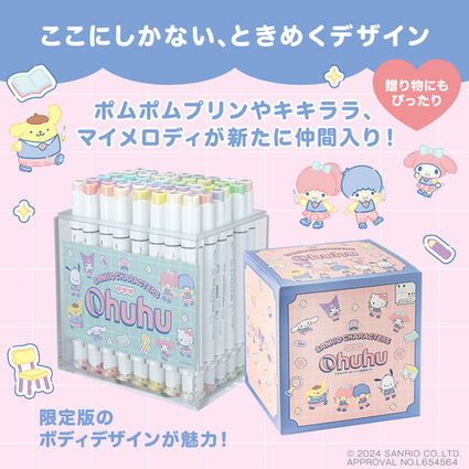 人気イラストマーカー【Ohuhu】と【サンリオキャラクターズ】夢のコラボセット第2弾が登場。パステルカラーを基調とし、ハローキティやシナモロールなどの人気キャラクターが勢揃い!パッケージからボディデザインまでカワイイを詰め込んだ、心おどる数量限定コレクションです。今回は特典として、サンリオキャラクターズのオリジナル塗り絵シートが2枚付属。毎日をちょっと特別に、創作時間を華やかに彩ります。